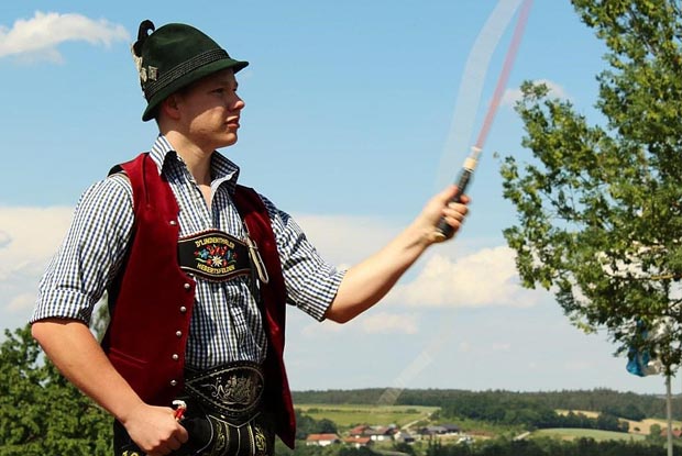 Während er als Zimmerer in der Corona-Lage weiterarbeiten kann, steht sein Vereinsleben ziemlich still: „Die Gemeinschaft ist für mich eigentlich das Schönste dran“, erzählt er: „Bei Festen, Gebietsproben und Fahnenweihen kommen wir sonst mit vielen anderen Vereinen zusammen.“ Auch die Goaßlschnalz-Proben fallen derzeit aus: „Da treffen wir uns normalerweise in einem großen Saal." Er ermutigt dazu, es mal auszuprobieren: „Das Schnalzen ist reine Übungssache, wenn dus einmal raus hast, dann funktionierts auch.“