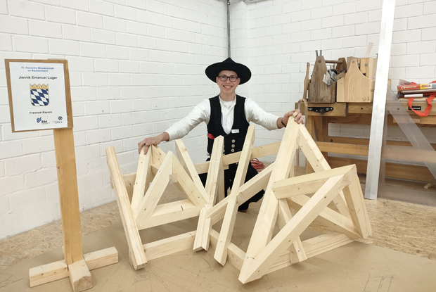 Jannik Emanuel Luger, mittlerweile 19 Jahre alt, absolvierte seine Ausbildung in der Zimmerei Holger Krauß in Leutershausen. Als bayerischer Landessieger nahm der Mittelfranke automatisch an den Deutschen Meisterschaft im Handwerk teil – und errang dabei den dritten Platz.